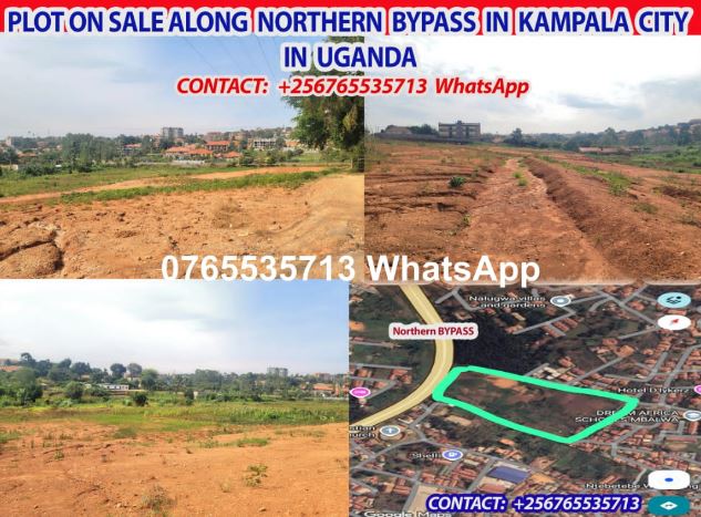 10 acres on sale along Northern Bypass in Kampala city in Uganda. No squatters and on flat terrain. Entry is via Namugongo tarmac Road. Has a LAND TITLE.